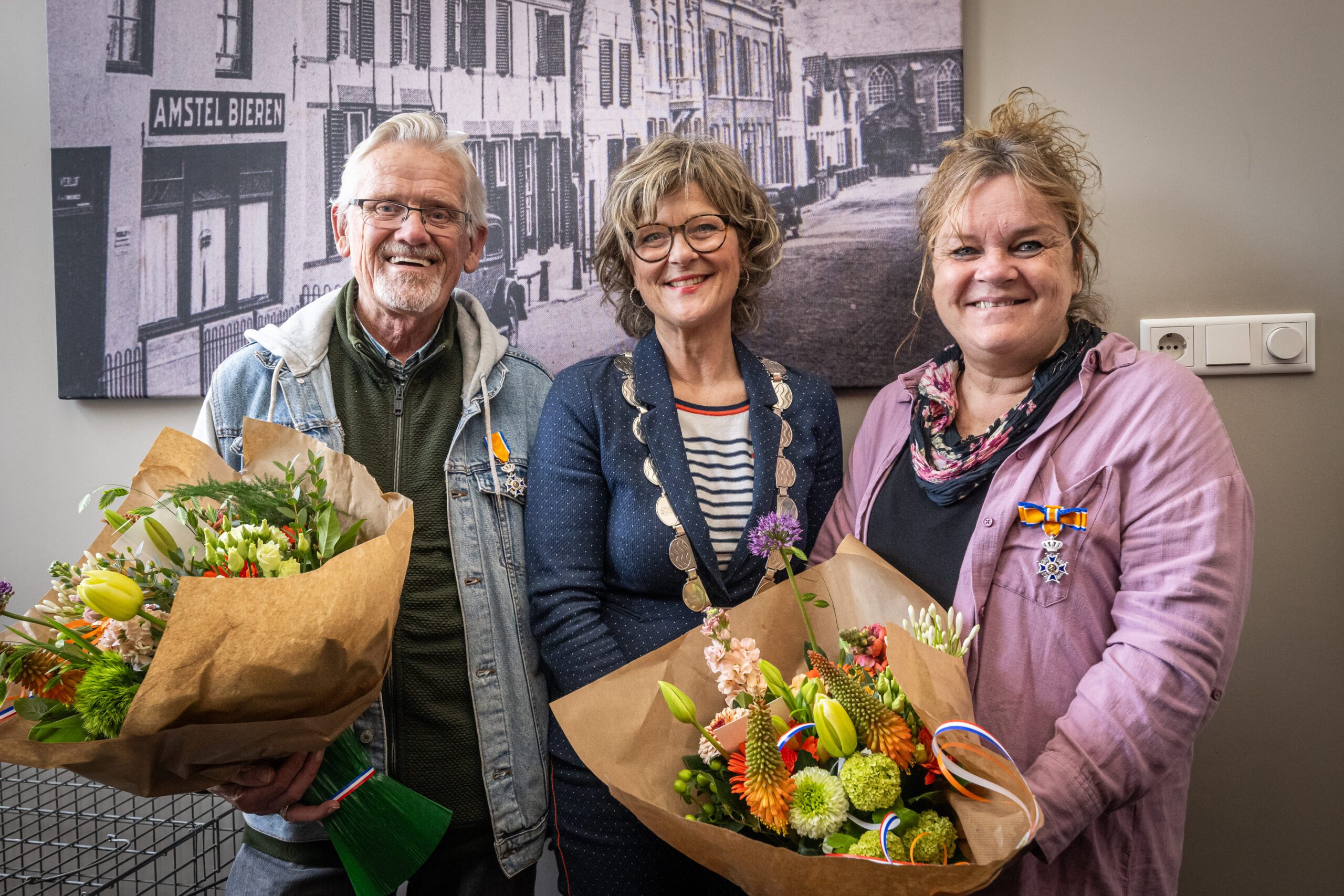 Burgemeester Ada Grootenboer-Dubbelman reikte de Koninklijke onderscheidingen bij de inwoners thuis uit. Het waren feestelijke momenten toen de inwoners de bijzondere boodschap hoorden en zij de versierselen uitgereikt kregen.